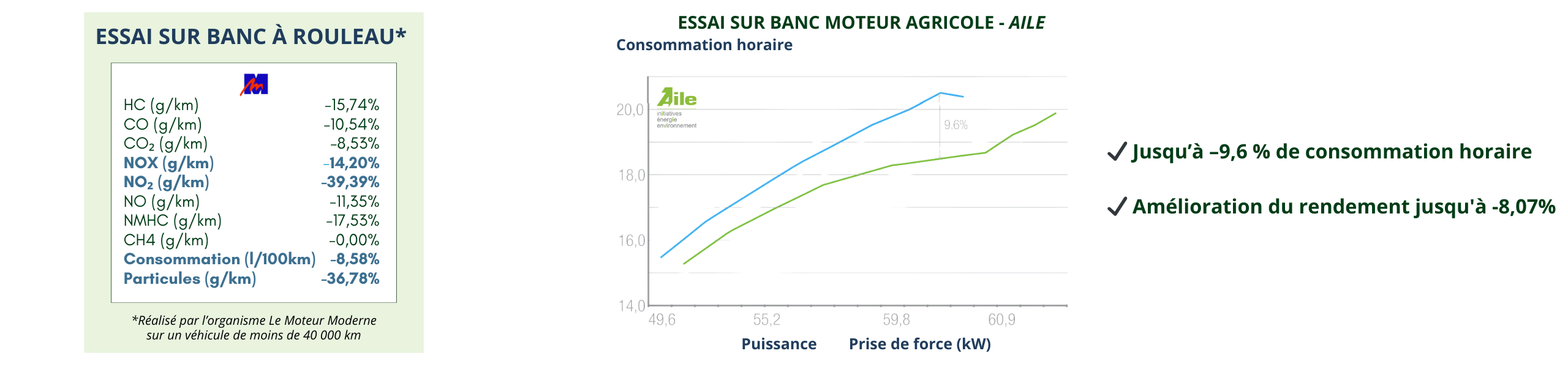 ECO GAS® est une solution testée scientifiquement par plusieurs organismes indépendants (AVL – Le Moteur Moderne, ECF, ARAGO, AILE…) sur différents types de matériels (véhicule léger, poids-lourd, engins agricoles, chaudière). Ces tests, réalisés à la fois en laboratoire et en conditions réelles, ont confirmé une réduction significative de la consommation de carburant et des émissions polluantes, tous types de moteurs confondus.
